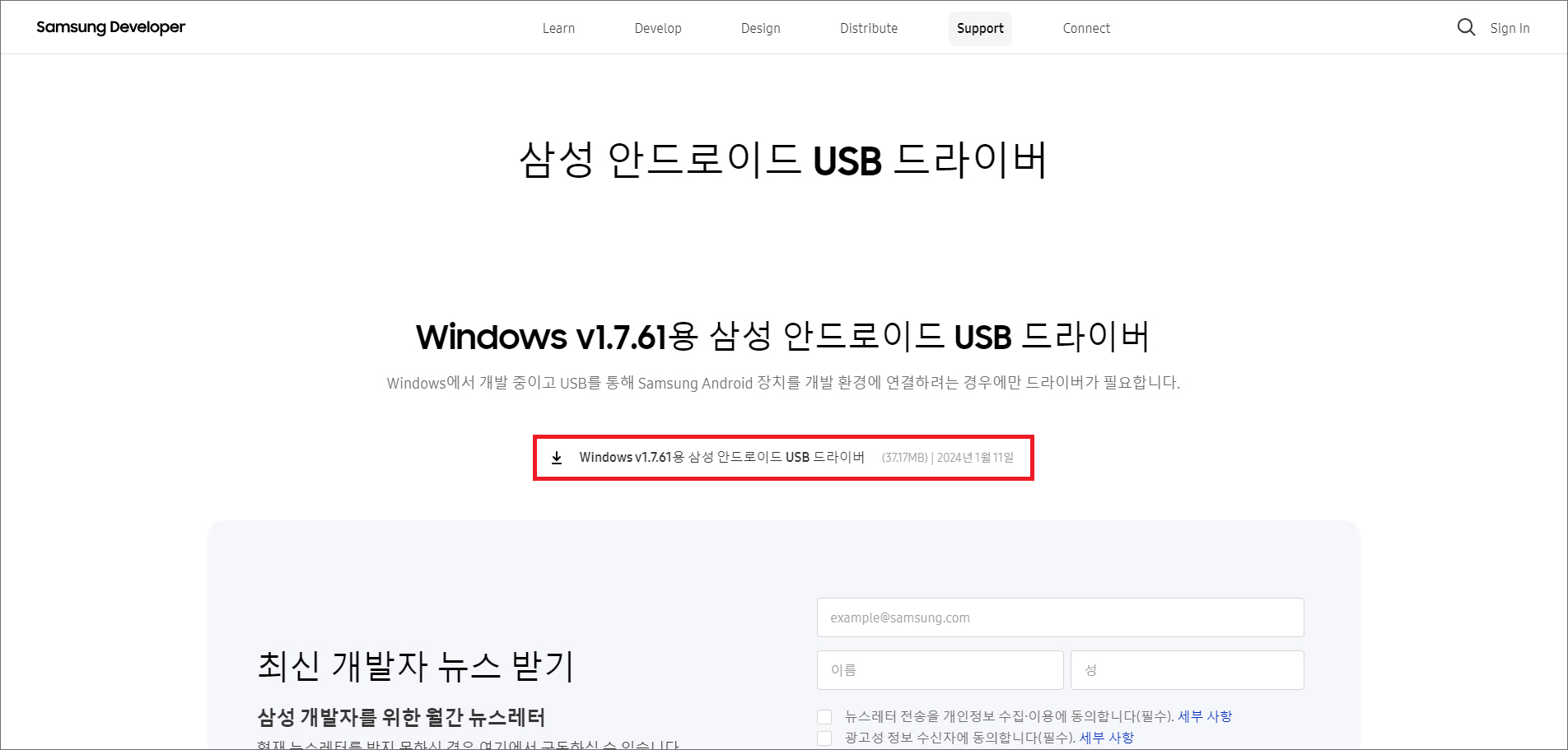 아래에 남겨드린 버튼을 눌러 이동하면 Samsung Developer의 고객지원 페이지가 나오는 걸 볼 수 있을 겁니다.