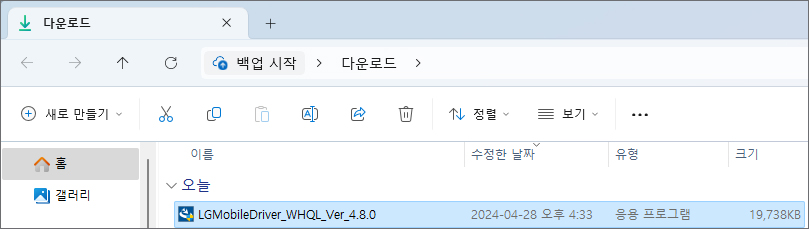 잠시 후 지정된 다운로드 경로를 찾아 들어가면 LGMobileDriver 파일이 생성되어 있을 것이므로 더블클릭해서 실행시켜주세요.